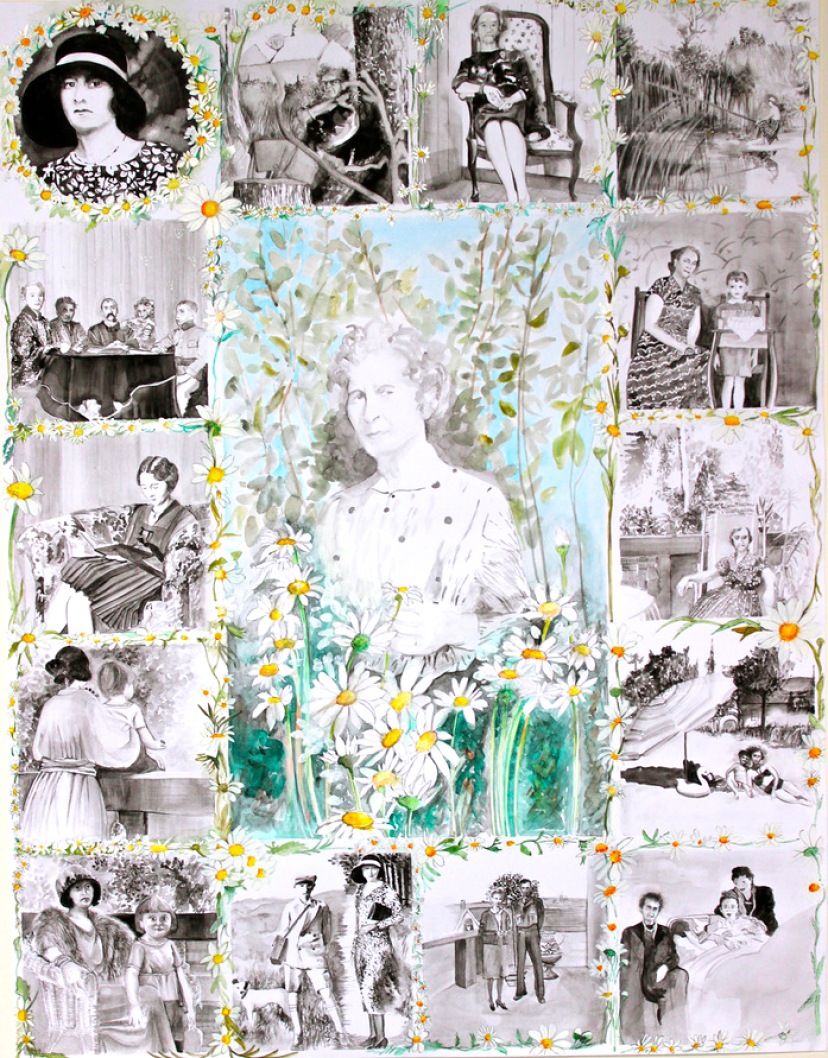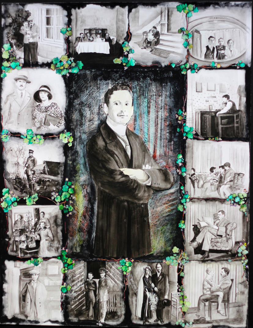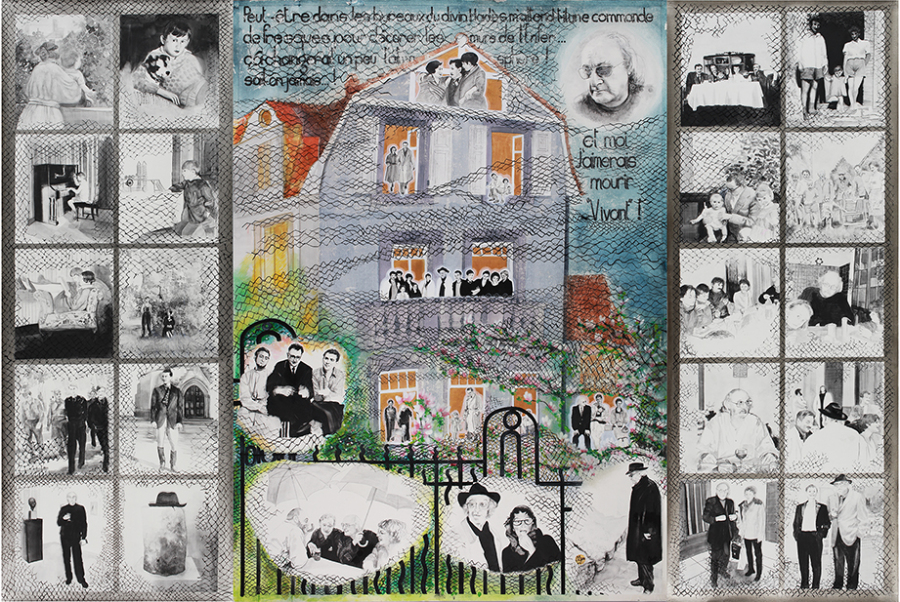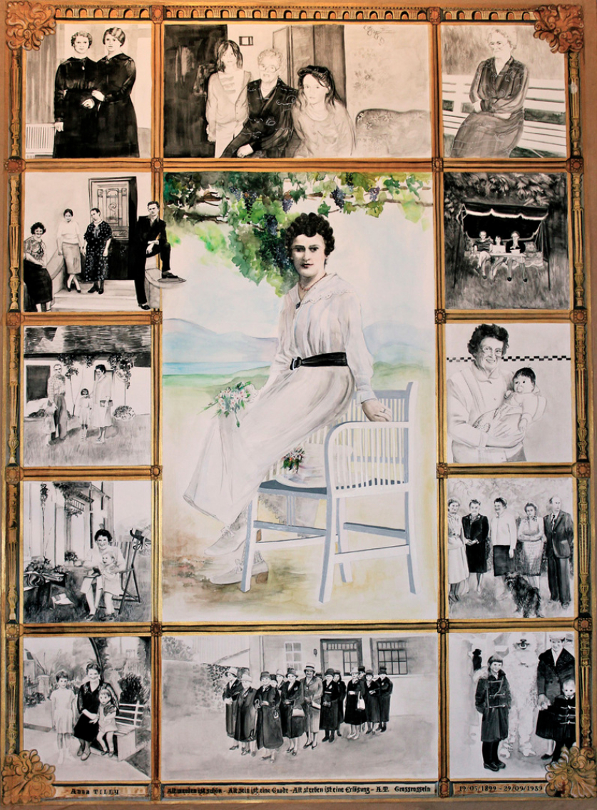 Anna TILLY née SCHULER - 19/05/1899 - 29/09/1989 . Alt werden ist schön, Alt sein ist eine Gnade, Alt sterben ist eine Erlösung" A. Tilly , Grossrosseln, D. Acrylique et aquarelle sur papier 84cmx110cm - 2014.