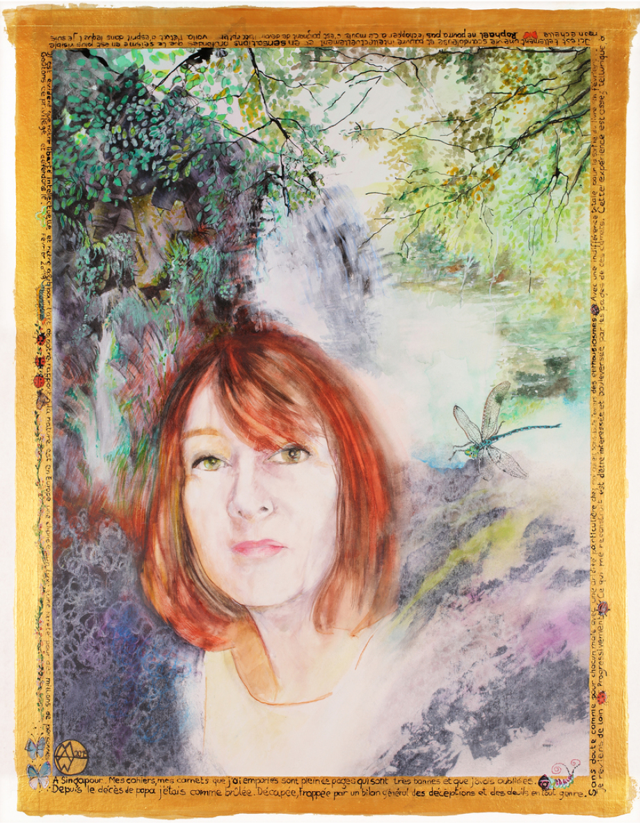 "Je t'aime, un peu, beaucoup, passionnément, à la folie, pas du tout" Portrait de Marguerite WOLTERS, née KIRCH. 50X65CM aquarelle sur papier.